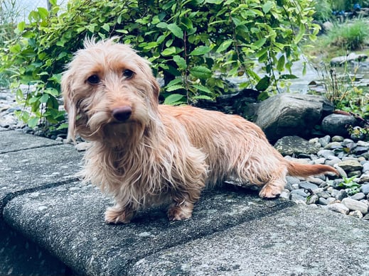 Dürfen wir vorstellen? Elodie, unsere kleine Creme-Zwergdackel-Dame mit rauem Haar – und damit ein echtes Unikat! Cremefarbene Dackel sind ohnehin schon selten, aber in der rauhaarigen Variante sind sie wirklich eine absolute Rarität. Elodie ist also nicht nur ein kleiner Clown auf vier Pfoten, der mit ihrem fröhlichen Wesen und ihrem verschmitzten Charme alle zum Lachen bringt, sondern auch eine ganz besondere kleine Dame, die mit ihrer außergewöhnlichen Farbe aus der Menge hervorsticht. Trotz ihres aufgestellten Wesens ist Elodie eine anhängliche, liebevolle und aufgeschlossene Hündin, die neue Freundschaften ebenso liebt wie gemütliche Kuschelmomente.